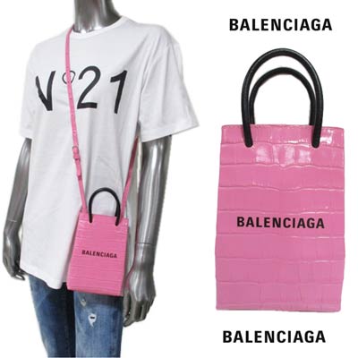 バレンシアガ BALENCIAGA レディース 鞄 バッグ トートバッグ ロゴ 2color 2WAY・クロコ型押し加工・BALENCIAGAロゴ付きカーフレザーミニトートバッグ ピンク/黒 593826 1U61N 5860/1090 (R106700) 02A 2020年秋冬新作【送料無料】 【smtb-TK】